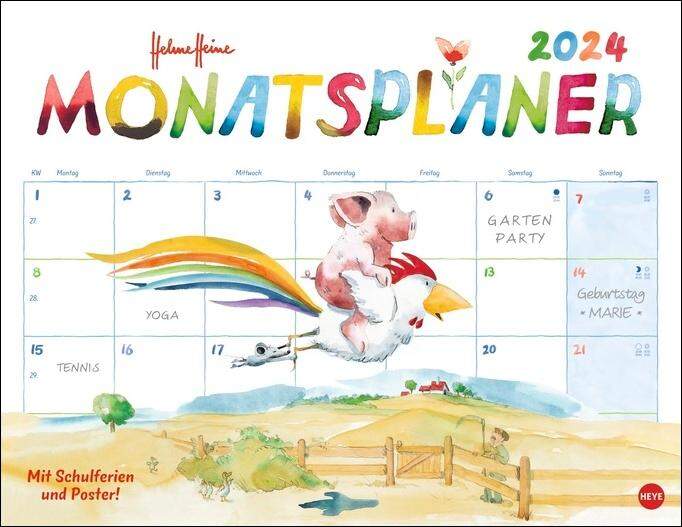 Helme Heine Posterplaner 2024. Liebevoll illustrierter Wand